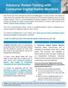 Advisory: Radon Testing with Consumer Digital Radon Monitors