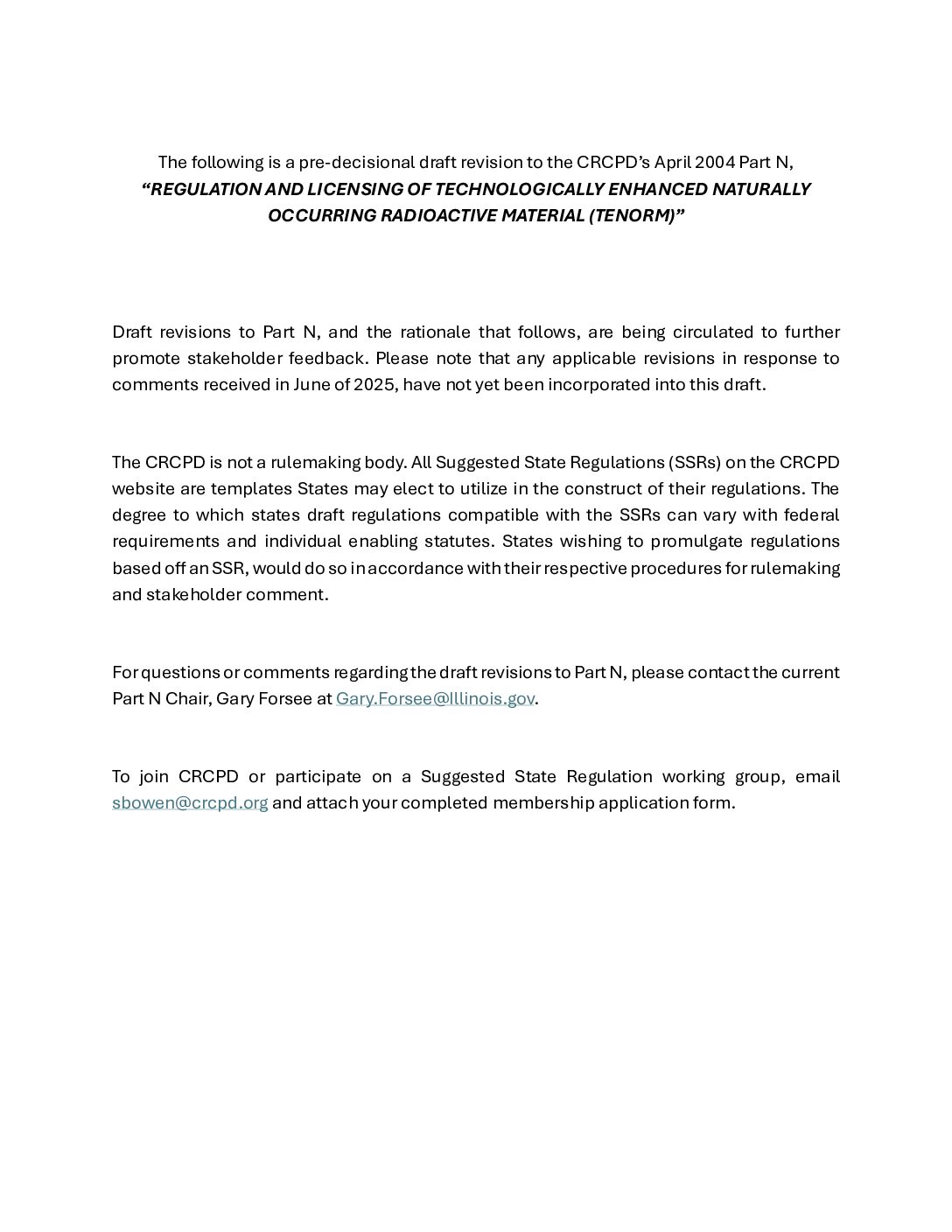 | NORM and TENORM, Suggested State Regulations, Working Groups | SR-N Suggested Regulations – Part N: TENORM Rules | | | norm-and-tenorm suggested-state-regulations working-groups publications |