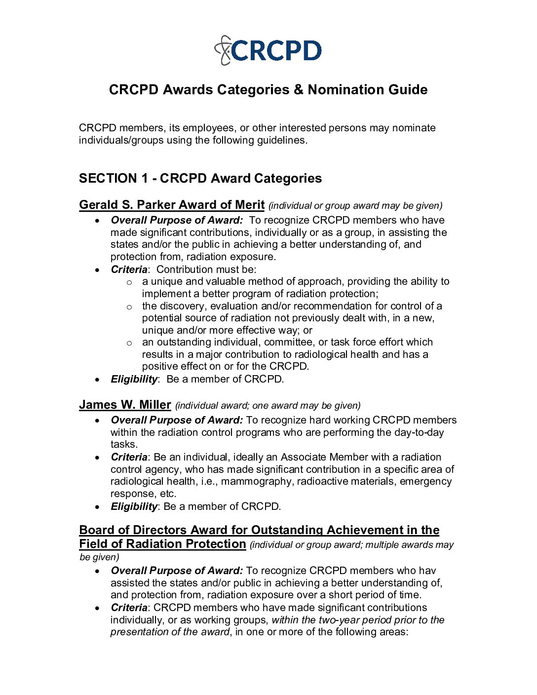 | Organizational Documents | Conference of Radiation Control Program Directors, Inc. (CRCPD) Board of Directors Statements of POLICY AND PROCEDURES | | | organizational-documents |