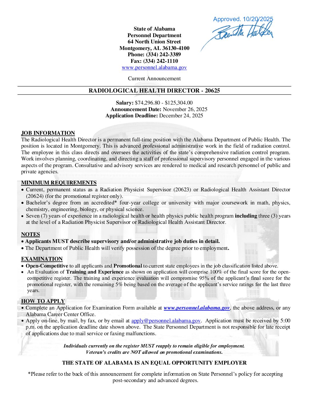 | | Alabama Job Posting | | | |