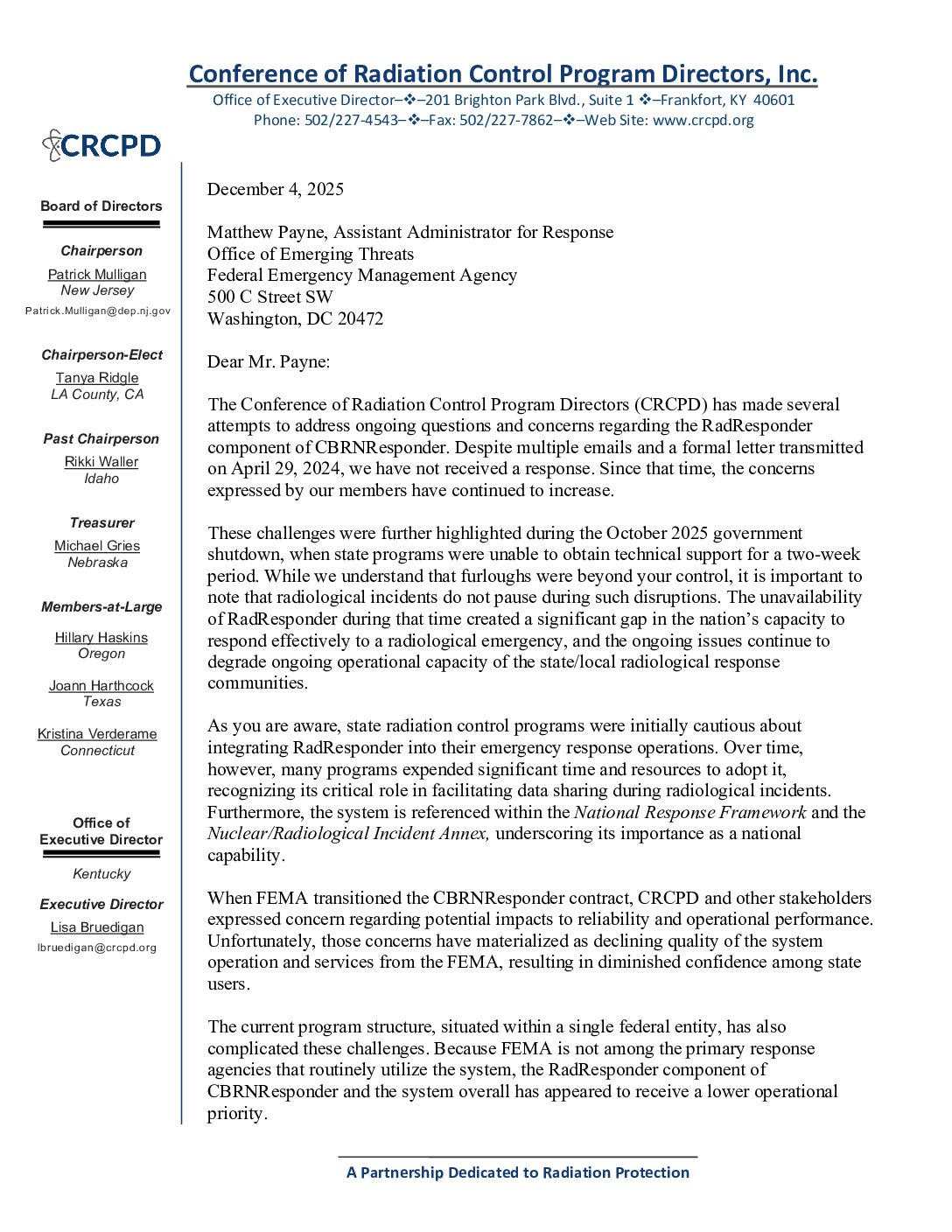 | Emergency Response Transportation, Positions | Board of Directors Position on State Expectations of the FRMAC | | | emergency-response-transportation-positions positions |