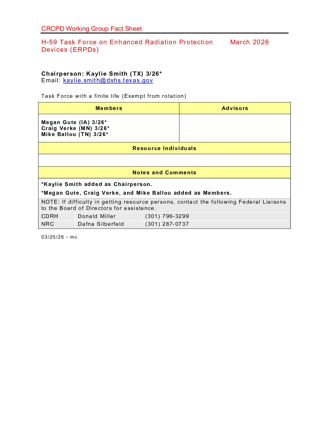 | Healing Arts, Working Groups | H-59 Task Force on Enhanced Radiation Protection Devices (ERPDs) | healing-arts-working-groups working-groups | |||