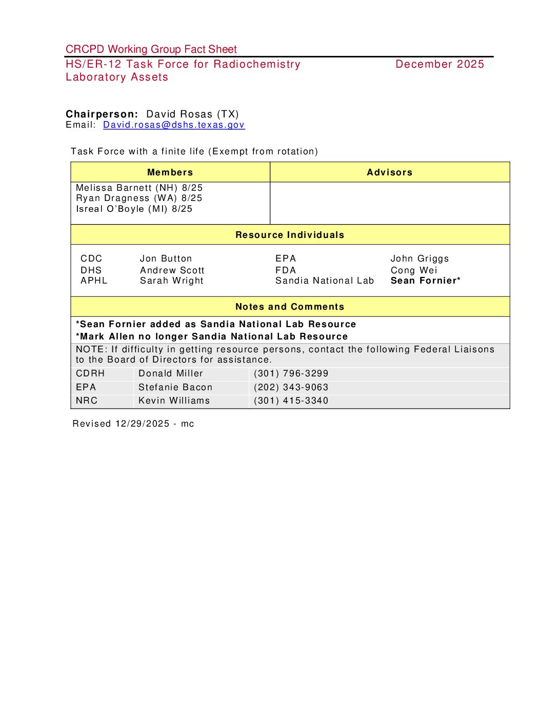 | Homeland Security-Emergency Response, Working Groups | HS/ER-12 Task Force for Radiochemistry Laboratory Assets | homeland-security-emergency-response working-groups | |||